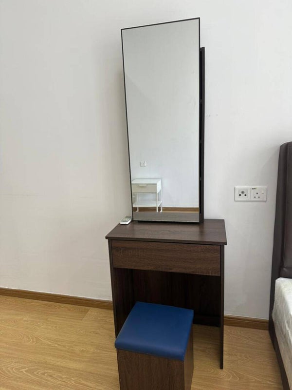 Spacious Master bedroom with good Furniture consist of Queen size bed, Study table/chair, TV Console, TV, fitted wardrobe, and attached toilet. It come with ceiling light fan, and good quality air-con. WIFI/Electricity/Water are included.