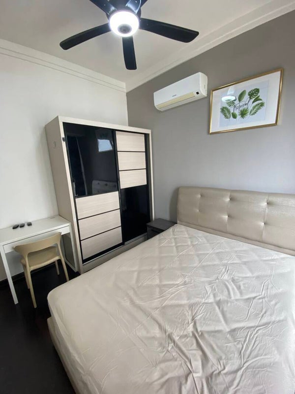 Spacious Common bedroom with Good Quality Furniture (Queen size bed, Study table/chair, Wardrobe). It come with ceiling light fan, and good quality air-con. WIFI/Electricity/Water are included.